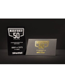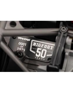 Traxxas célèbre les 50 ans de BIGFOOT avec 1 975 trucks numérotés, chacun étant équipé d’une plaque en aluminium gravée au laser indiquant son numéro de série, ainsi que des badges en aluminium assortis sur la carrosserie et le châssis.