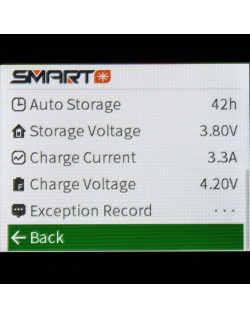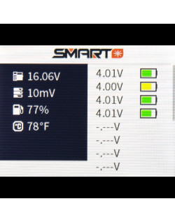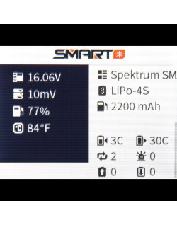 Lorsque vous utilisez le testeur de batterie Spektrum XBC100 avec une batterie Spektrum Smart, vous serez en mesure de voir et de régler de nombreux paramètres. Cela inclut la vérification de l'équilibrage des cellules et du niveau de la batterie, et la fourniture de données tels que le nombre de cycles et la température interne de la batterie. Vous pouvez même régler les paramètres de la batterie Smart directement à partir du XBC100.