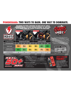 Voici maintenant la technologie PowerGuard qui change la donne. Le MINI KRATON 3S BLX est le premier véhicule ARRMA équipé de PowerGuard. Dès sa sortie de boîte, avec une batterie 3S, il offre une vitesse de pointe de plus de 48 km/h et une autonomie de plus de 20 minutes, idéale pour tous les niveaux et parfait pour perfectionner sa technique tout en profitant de la puissance d'un véritable moteur brushless. Si cela ne suffit pas, un simple interrupteur sur l'émetteur permet de bénéficier de plus de 30 minutes de jeu. Lorsque votre confiance grandit et que votre sourire s'élargit, il est temps de passer au PowerKey. Branchez-le et libérez toute la puissance du moteur 3S, atteignant plus de 80 km/h et transformant ce petit bolide en une véritable machine à sensations.