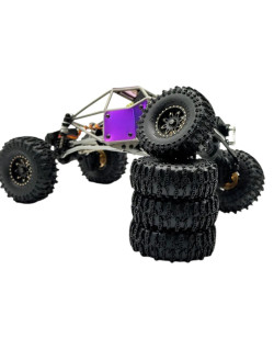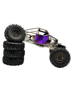Sa robustesse est assurée par des composants haut de gamme, notamment la transmission Micro Stellar pour une puissance optimale, des biellettes de suspension en aluminium à grand dégagement, des arbres de transmission en acier et des amortisseurs hydrauliques en aluminium, garantissant un fonctionnement souple et fiable sur les terrains les plus accidentés. Le crawler est équipé de roues entièrement en laiton et de pneus hexagonaux intégrés en laiton pour une traction accrue et un centre de gravité bas.