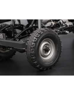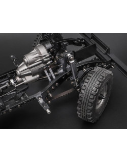 Le châssis est équipé de nos jantes SLR™ 1,9" en acier à verrouillage de talon, livrées avec des enjoliveurs à l'échelle et un outil pour une installation facile, ainsi que des vis à l'échelle spécialement conçues pour ces jantes (outil inclus). Les jantes sont chaussées de pneus Mileage Classic™ 1,9" à l'échelle, en gomme Gekko™ Black (super tendre). Ce caoutchouc tendre et adhérent est notre composé exclusif, utilisé dans nombre de nos pneus et formulé pour optimiser les performances et la durabilité des crawlers sur terrains accidentés.