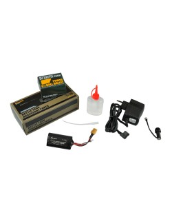 char 2,4 GHz , batterie Li-Ion 7,4 V 1 800 mAh , chargeur secteur (sortie 850 mAh ), munitions BB 6 mm , liquide fumigène, autocollants, accessoires, figurine, manuel d'instructions (DE/EN)