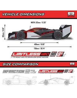 Vivez une vitesse inégalée avec la Speed Machine LIMITLESS prête à rouler ! Dès sa sortie de l'emballage, avec son rapport de transmission standard et son différentiel central, elle atteint une vitesse impressionnante de 112 km/h pour des courses tout-terrain intenses. Installez le pignon haute vitesse inclus et augmentez la vitesse de pointe à plus de 160 km/h. Grâce au pignon haute vitesse, à la bobine centrale en option et au pack aérodynamique optimisé, des vitesses époustouflantes à 193 km/h sont possibles !