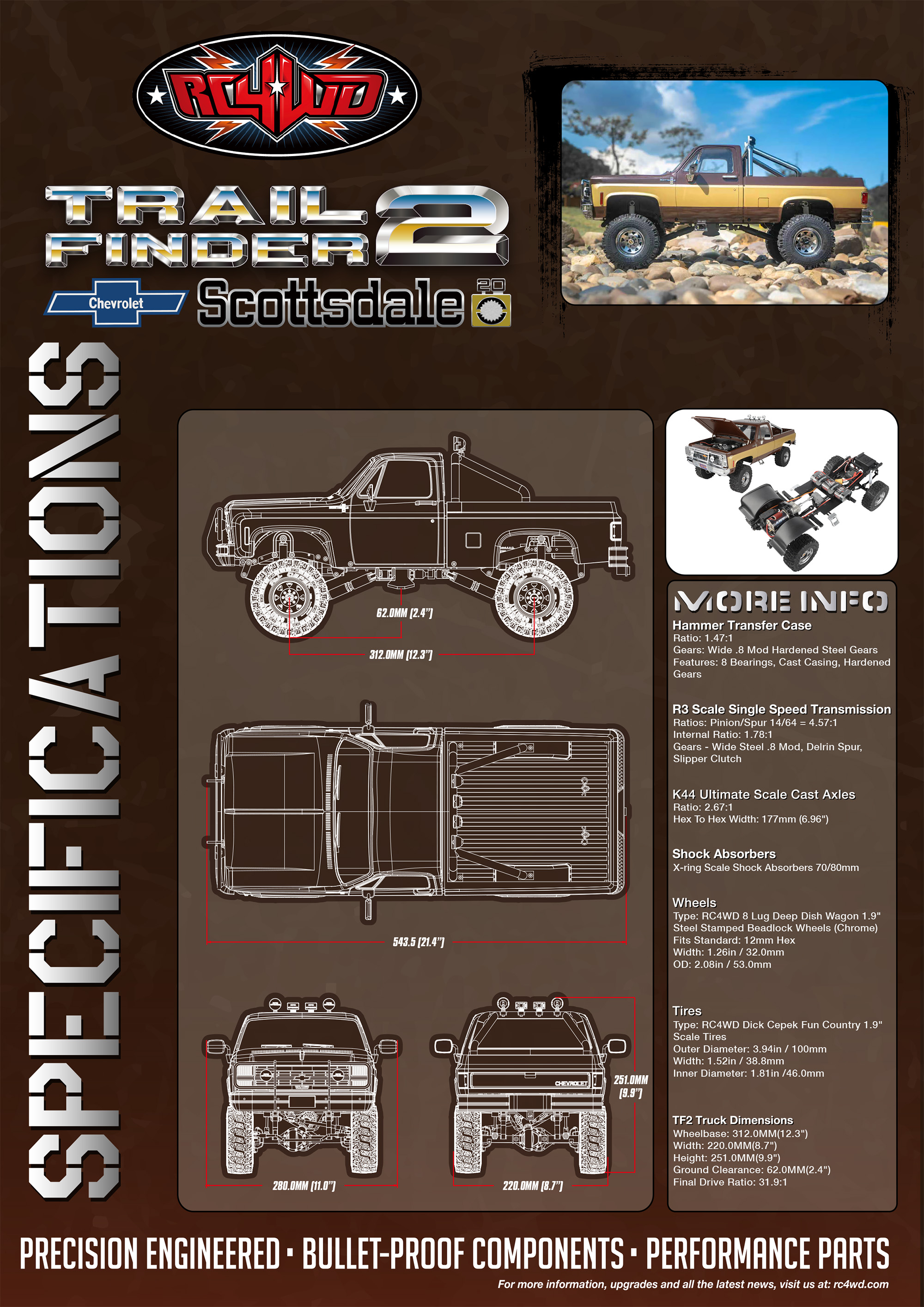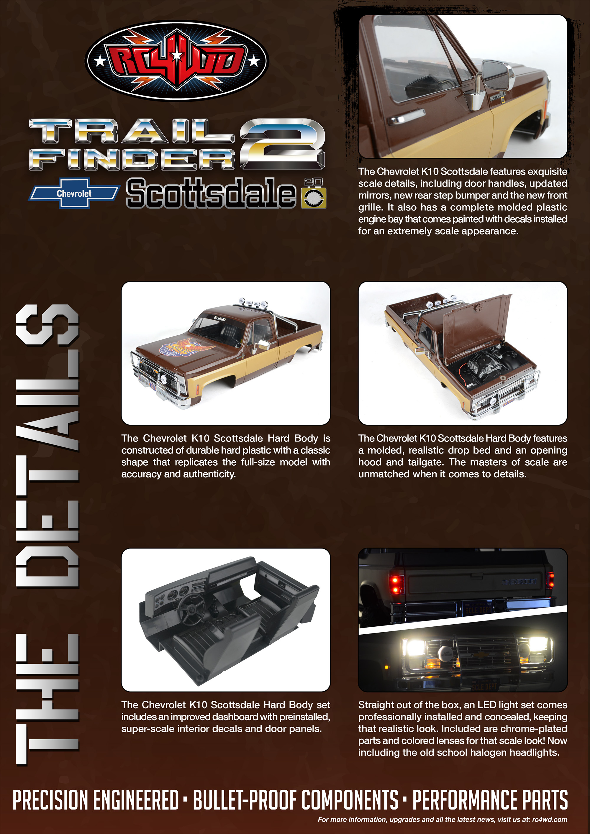 - 1x RC4WD Trail Finder 2 "LWB" RTR avec carrosserie rigide Chevrolet K10 Scottsdale (Édition Scale Dept.)