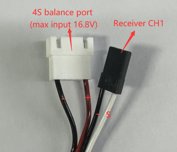 Le HD-WB-120KG est équipé de 2 prises : utilisez le câble d'équilibrage 4S pour alimenter le servo (entrée d'alimentation 12,6 V ~ 16,8 V)