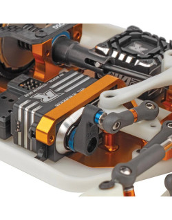 La YZ-10 est équipée d'une transmission à deux courroies haute performance, de différentiels à engrenages coniques, d'un embrayage anti-dribble et d'arbres de transmission universels. La batterie est montée en selle pour une meilleure répartition du poids. Un support pour batteries LiPo courtes est également fourni.